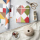 This wrapping paper has a Bauhaus design of overlapping diamonds in retro colors.