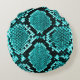 Diamond Rattlesnake Snake Skin aqua Round Cushion