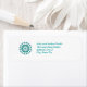 Painting of a mandala with diamond shapes in teal, turquoise, printed on return address labels. Easily customise the names and address on the template form. Can be customised.