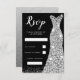 Diamond Sparkle Dress Birthday Party Bridal Black & Silver RSVP Card