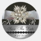 DIAMOND STARS BLACK WHITE RIBBON MONOGRAM CLASSIC ROUND STICKER