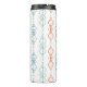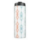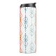 This thermal bottle has a mid-century modern design of vertical lines with diamonds and ovals in three different designs repeating across the design. If you like the design but prefer different colours, message me.