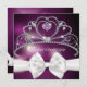 Chic and Glamour - a beautiful Diamond studded tiara on a mottled purple background with a Big white Satin Bow at the bottom and back NOTE: There are no real pearls, glitter, diamonds,jewels,ribbons or bows on this card, these are artistically created designs made to appear real