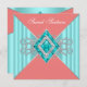 Diamond Turquoise Coral Sweet 16 Birthday Party Invitation