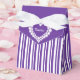 Diamond wedding or diamond anniversary party thank you gift box in purple and white. Great to add a touch of personalised bling to diamond styled wedding or diamond wedding anniversary parties, dinner parties and informal gatherings. Ideal gift idea as a wedding favours or to place on reception dinner tables or party tables filled with sweets or gifts. Would also make a nice parting commemorative thank you for coming gift. Grey and white diamond heart effect art and design by Sarah Trett.