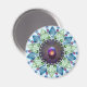Round magnet with an image of an artwork created with images of diamond-shaped blue topaz and peridot gemstones, emerald triangles, pearls, and fiery opals in an ornate setting. See the entire Gemstones & Medallions Magnet collection in the HOME section.