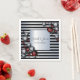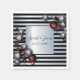 A unique personalised napkin design featuring a beautiful composition of diamonds and rubies in different sizes on a black and silver striped background. The text is fully customisable.
