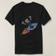 I give wanted to give this a 4 instead of a 5 because these Basic DARK T0shirts run unexpectedly SLIM or Narrow. Which is great if you do not have a potbelly, but I have a paunch. It isn't the shirt's fault that I've got a beer belly. The design and shirt itself is a quality cotton shirt. The color is more of a deep purple, but still a very pretty color. The Basic DARK T-shirts run a bit SLIMMER than the Basic Ts. The neck is a fraction narrower (or seems to be narrower) also. I'm a paunchy middle-aged woman and my neck is 12 inches (31cm) thick and the neckline fell about the same as in the photo of the man, and I had the desire to tug it a bit. So if you're a thick necked man or like loose shirts, be aware these are slimmer shirts. Once I get rid of my lockdown paunch it'll look great. The shirt washed well in cold water with no apparent bleeding. We don't have a dryer, so it hung dry. Did not shrink. Love the colors and the design. The design looks smaller on my shirt than it does on the model on-line. But still, it looks good on the shirt. The printing looks as it does on the model, just the size seems fractionally smaller. Washed garment in cold water, hung dry and design appeared unaffected.