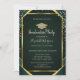 Diamonds Gold Grad Cap Striped Green Graduation Invitation