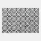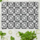 Towel with a black and white pattern showing some of the different cuts of a diamond. The design includes the emerald cut, baguettes, round cut, trilliant, cushion cut, square cut, and pear cut.