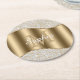 Diamonds, Large Gold Monogram, White Script Name Round Paper Coaster