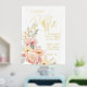 Rustic and elegant rustic baby shower diaper raffle sign featuring a cascading floral bouquet of soft pastel watercolor roses, peonies and foliage in shades of blush pink, pale peach and ivory cream, with soft green botanical leaves and eucalyptus greenery and a hint of gold flecked leaves, accented with handwritten style calligraphy. Use our easy to customise template to personalise with your baby shower details - the back is a rich muted green with a beautiful bouquet of matching flowers . ©WhimsicalArtwork™