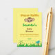 An enclosure card for a diaper raffle, this design features a yellow background with "Diaper Raffle" written at the top in gold font. There is a monkey underneath with the guest of honour's name centred in green. "Baby shower" written underneath in brown, with a message to bring diapers underneath. There is a place to write your name underneath. Place your order today!