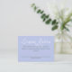 Simple and sweet, this enclosure card encourages baby shower guests to bring a pack of diapers with them to be entered into a drawing for a prize on the day of. Editable text lets you personalize the wording to suit your needs, while a line makes it clear that guests need to write their names on the card before entering. The background color of soft cornflower blue is a pretty addition to the aesthetic of the Country Floral baby shower suite.