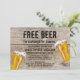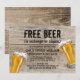 Invitation for a father-to-be guy's and men's casual couple's baby shower party with a "diapers & beer" theme with the saying "Free Beer in Exchange for Diapers" on a rustic wood background with beer pint glasses and editable text to create your own diapers & dudes baby diaper party horizontal invitation.