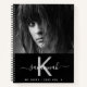 A chic black background. Personalise and add your own photo, a name, monogram letter and a year. The name is written in white with a large modern hand lettered style script with swashes. The monogram letter in grey. For school, work, as a diary and for journalling.