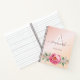 A stylish girly and feminine rose gold and blush pink gradient background decorated with a large pink rose, green leaves with small golden flowers and a faux glitter band. Personalise and add your name, monogram letter and a title. The name is written with a large trendy hand lettered script with swashes. To keep the swashes only delete the sample name, leave the spaces or emoji's in front and after the name. Rose gold coloured text. Use it as a diary, journal, for taking notes, for school, work or your home office.
