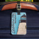 The Dice Head Light luggage tag is vibrant and fun. It features a image of a hand-painted lighthouse against a vivid sky, crafted from durable lucite. The tag is thick, hefty and strong. A sturdy buckle strap, in a coordinating colour, ensures it attaches securely to any luggage handle. The overall aesthetic is playful yet chic, and makes your bag noticeable at baggage claim.