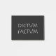 Dictum factum. What is said is done. A latin quote of wisdom and philosophy that is still valid and true today.