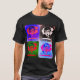 I give wanted to give this a 4 instead of a 5 because these Basic DARK T0shirts run unexpectedly SLIM or Narrow. Which is great if you do not have a potbelly, but I have a paunch. It isn't the shirt's fault that I've got a beer belly. The design and shirt itself is a quality cotton shirt. The color is more of a deep purple, but still a very pretty color. The Basic DARK T-shirts run a bit SLIMMER than the Basic Ts. The neck is a fraction narrower (or seems to be narrower) also. I'm a paunchy middle-aged woman and my neck is 12 inches (31cm) thick and the neckline fell about the same as in the photo of the man, and I had the desire to tug it a bit. So if you're a thick necked man or like loose shirts, be aware these are slimmer shirts. Once I get rid of my lockdown paunch it'll look great. The shirt washed well in cold water with no apparent bleeding. We don't have a dryer, so it hung dry. Did not shrink. Love the colors and the design. The design looks smaller on my shirt than it does on the model on-line. But still, it looks good on the shirt. The printing looks as it does on the model, just the size seems fractionally smaller. Washed garment in cold water, hung dry and design appeared unaffected.