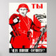 Here, the central figure with a pointing finger, encouraging men to enlist in the Red Army, echoes the equally famous British First World War recruitment posters featuring Lord Kitchener, but adds a distinct spin with its background of smoking factories and the use of an ordinary soldier rather than a commander.