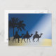 Drei Kamelreiter reiten durch die Sternen klare Nacht an Dattelpalmen vorbei in Richtung des strahlenden Lichtes. Laut der Legende waren es Caspar, Melchior und Balthasar die als die drei Weisen aus dem Morgenland gerühmt wurden. Drei Könige, die dem Stern von Bethlehem folgten und die Krippe fanden. Sie brachten Geschenke, kostbares Öl, Weihrauch und Gold das sie Jesus schenkten.