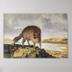 A fierce looking striped hyena is the subject this reproduction of German artist Aloys Zotl's Die gestreifte Hyäne."