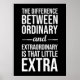 The composition of this poster is a testament to modern aesthetics—minimalist yet powerful. Set against a clean, stark white background, the message “the difference between ordinary and extraordinary is that little extra” is artfully highlighted in an elegant, bold black font. This monochrome palette ensures that the words are the focal point, radiating a timeless sophistication that complements any room decor.