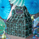 Cyan stamped with different chess, squares or image under grating? From a distance, he sees cyan fish scale, closely chess?