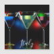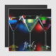 Different cocktails in martini glasses with lights