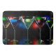 Different cocktails in martini glasses with lights bath mat