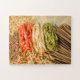 A jigsaw puzzle with the photographic image of different types of pasta filling the frame. Complete with the Italian flag of Red, Yellow and Green. This puzzle is fully customisable. You can add a message or any text or you can change the size and amount of pieces of the puzzle to set the difficulty level as you prefer.