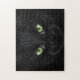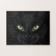 Hard to solve black cat photo jigsaw puzzle. If you love cats and enjoy the challenge of a difficult jigsaw puzzle this one will be just the right match for you. The only detail standing out in an otherwise almost all black photo are the kitty's gorgeous green eyes.