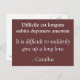 A postcard with a latin phrase and an english translation underneath. "It is difficult to suddenly give up a long love", by Catullus. Basically it means that breaking up sucks.