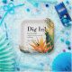 Introducing the Birds of Paradise Bliss Round Paper Plate, featuring a captivating dark green backdrop adorned with a delightful frame showcasing the exotic beauty of birds of paradise from the Birds of Paradise Bliss collection. This particular plate carries a touch of humour with the caption: "Dig in! For the record, calories don't count at weddings!" Below the caption, couples' names are playfully presented, accompanied by the date of the ceremony. This lighthearted and visually stunning design adds a unique and entertaining touch to the paper plate, making it not only a functional element but also a charming and amusing accessory that brings joy to the Birds of Paradise Bliss collection.