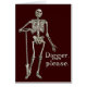 Image: Drawing of a skeleton with a shovel, taken from Andreas Vesalius's "De humani corporis fabrica" (1543). Text: Digger, Please. Funny shovel bum t-shirt for anthro geeks who are willing to go there with a truly bad pun.