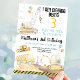 This cute birthday invitation features watercolor construction trucks and colourful balloons.