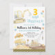 This cute birthday invitation features watercolor construction trucks and colorful balloons.