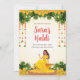 This DIY Haldi invitations template Dholki invite or Pithi invitations, a fusion invite in traditional elegance, is complemented with florals & leaves, perfect for your Haldi ceremony celebrations