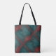 Digital twisted mesh of showy cyan wire over red t tote bag