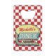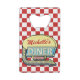 This cool, retro 50s diner sign bottle opener can be easily personalised with your own name. The background is a slightly-distressed red-and-white chequered pattern, and the 1950s-style sign on top says DINER and OPEN in faux neon. The design has an arrow graphic and room for your first or last name at the top. The colour scheme is red, white, yellow, and teal blue with some grey and black. DESIGN TIP: Add your name to the easy template field. Or "customise / personalise further" to resize your text or alter the font and colour. This one-of-a-kind design with all original artwork will look fab in your diner, kitchen, or at your 50s-themed party. Find the light pink / blue version here: https://www.zazzle.com/create_your_own_custom_retro_50s_diner_sign_credit_card_bottle_opener-256570789033539711