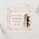 Gorgeous unique dinner and dance party invitation. Romantic image of a couple dancing. The gentleman is dressed in a black suit with tails and the lady is dressed in a cream coloured dress. This invitation is highlighted with gold effect borders with flowers in each corner. Easily customisable for you to add your own party details. Each dinner and dance party invite comes complete with a white envelope.