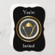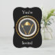 Dinner Invitation Blank Template. Dine Dining dinner invitation, customise your event information, style colour and more. Metallic gold with black background.