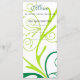 Dinner menu card for weddings, birthdays, anniversary, graduation, meetings, celebrations, elegant green and yellow swirl flora pattern.