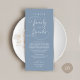Introducing the perfect finishing touch to your wedding reception - our elegant romantic script in dusty blue Wedding Thank You Dinner Place Setting Cards, with card title "to our family and friends" ! Designed to express your heartfelt appreciation for each guest's presence on your special day, these cards are the ideal way to add a personal touch to your dinner tables.