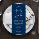 Introducing the perfect finishing touch to your wedding reception - our elegant romantic script in navy blue Wedding Thank You Dinner Place Setting Cards, with card title "to our family and friends" ! Designed to express your heartfelt appreciation for each guest's presence on your special day, these cards are the ideal way to add a personal touch to your dinner tables.