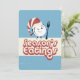 Cute retro or vintage style winking dinner plate wearing a winter candy-striped hat and holding a fork on this Christmas holiday card for personal chefs, caterer or catering company, restaurant, cooking classes or other professional or gourmet foodies, personalized with your text and logo on the back and your choice of color scheme.