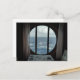 Set the mood for your next adventure with this elegant postcard featuring a table for two aboard a cruise ship, perfectly framed by a grand round porthole gazing out to the endless ocean. The gentle waves beyond the glass hint at serenity, romance, and wanderlust.