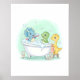 Make hygiene dino-mite with this adorable dinosaur kids bathroom wall art featuring baby dinos brushing teeth and splashing bubbles.