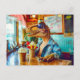 Dino Eating Ice Cream at Cafe Holiday Postcard